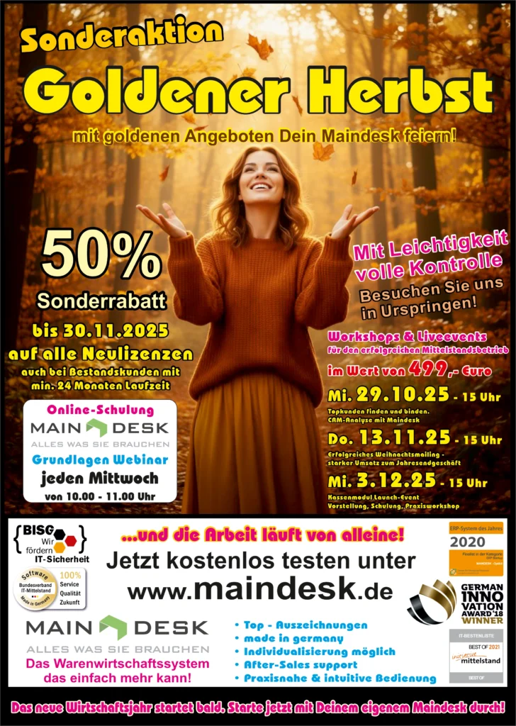 🗓️ Kostenfreie MAINDESK Herbst-Events: Wissen nutzen und Termine sichern!